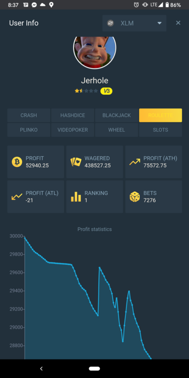 Any way to improve the ranking rewards and a reward per each crypto type. Maybe display ranking with win and lost amount next to it. (example, I've been too 1 xlm roulette for awhile now, according to my profile. Though I have yet to receive any kind of reward. It's been explained to me that losses subtract from taking, which makes sense but, why does it still display me as#1 then?) Also, I don't think sweet codes actually exist, they're a myth. Like a unicorn, with money bags