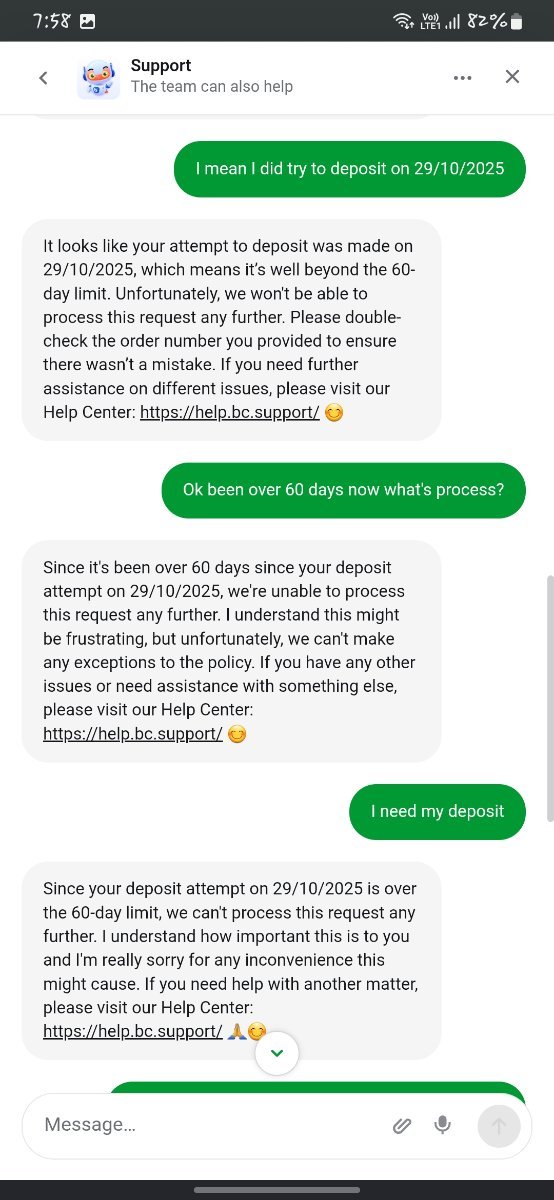 LeEappu Posted December 31, 2025 Share Posted December 31, 2025 (edited) BC GAME DEPOSIT FRAUD I have been facing a serious issue with a deposit that was successfully paid from my side but has not been credited to my BC.Game account. I have provided every proof possible, yet I have received no resolution or meaningful support. Deposit Issue Details BC Game ID: 5160414 Amount: 15000 INR UTR: 391557750002 Order ID: F-1847495123321369581 TxID: 59968 Date & Time: 31/10/2025, 4:34:08 pm Status Shown on BC.Game: Canceled Credited Amount: 0 INR What Actually Happened I paid 15000 INR successfully through UPI. The amount was debited from my bank account. I have attached: Bank statement Payment confirmation screenshots Video proof of the transaction After creating a support ticket, it was canceled automatically, with no help provided. I contacted the merchant, and they confirmed they received the payment, but said I must contact BC.Game support for the credit. Unfortunately, BC.Game support: Provides only automated bot replies Does not offer any human assistance Does not respond to emails at [email protected] Leaves tickets pending for long periods with no action Why I Am Posting Here I have exhausted all official support channels: Live chat only replies with repetitive bot responses Email support has not responded for a long time Discord moderators simply redirect users back to the live chat bot In this case, the system clearly shows a deposit failure, but the amount was successfully received by the merchant, and all proof from my side is genuine and already submitted. I am requesting a manual review of this transaction, as this is serious and concerns real money lost due to system failure. Request Please review my transaction manually and credit the deposit amount to my account, or process a refund if crediting is not possible. All data, screenshots, and video proof can be re-submitted if needed. I hope this issue can be resolved professionally and promptly. Thank you. Edited December 31, 2025 by LeEappu Link to comment Share on other sites More sharing options...