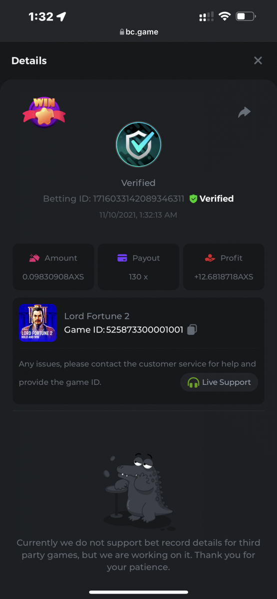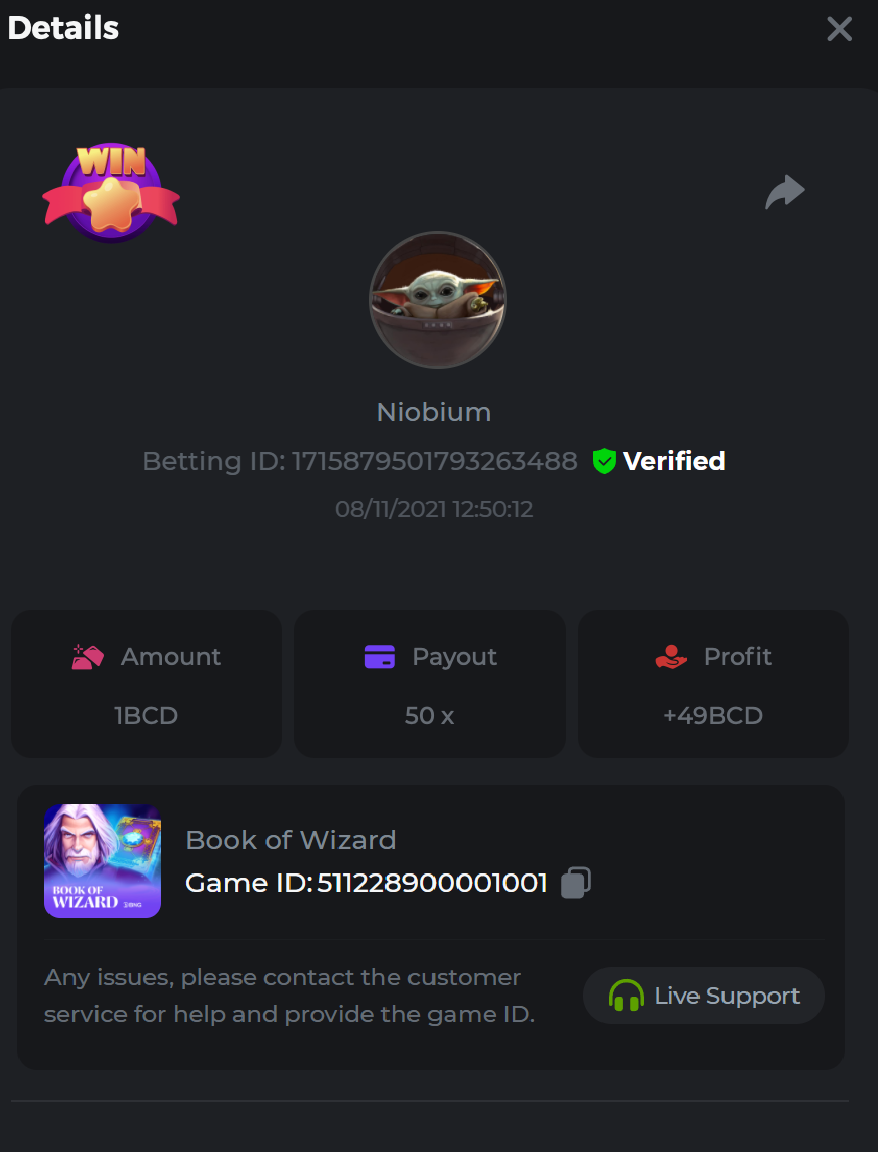 • In the same post, upload a screenshot of your win by clicking the game ID WITH VIEW IN USD mode ENABLED (accessible at the bottom of dropdown menu for your wallet up top. This way, we can ensure that your bet indeed met the minimum requirement at the time of placing it: